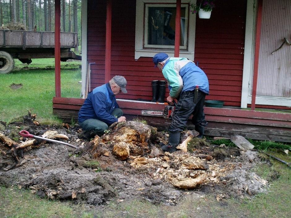 – Eikä ole sellaista neuvontakertaa, etteikö lähtiessä olisi jotain tuliaisiakin laitettu mukaan. Usein ne ovat olleet vastoja. Muistan, että eräällä kerralla tuliaisena isännän itse tekemä ”pirunnyrkki”. Eikä sitä ollut tehty millään vannesahalla vaan ihan käsityönä käsisahalla! Olen sen saanut kasattua, kun erehdyin purkamaan nyrkin. Tosin piti jonkin aikaa pyöritellä ennen kuin onnistuin, toteaa Karhu.