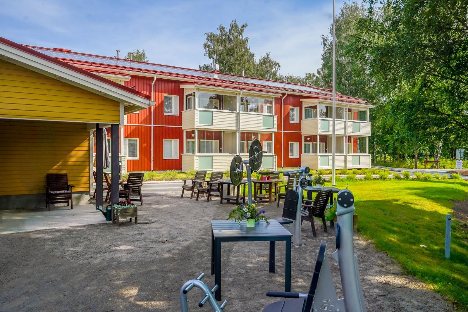 Rakennukset muodostavat pihapiirin, jonka keskellä on ns. toimintaosasto eli liikuntatilat ja ravintola. Sisäpihalla ovat ulkokuntoiluvälineet, nuotiopaikka, jonka ympärille on mukava kokoontua seurustelemaan sekä käynti esteettömälle kävelyreitille puistoon. Taloja myös kiertää asfaltoitu ja valaistu kulkuväylä, jota voi kulkea oman kunnon ja auringonpaahteen mukaan.