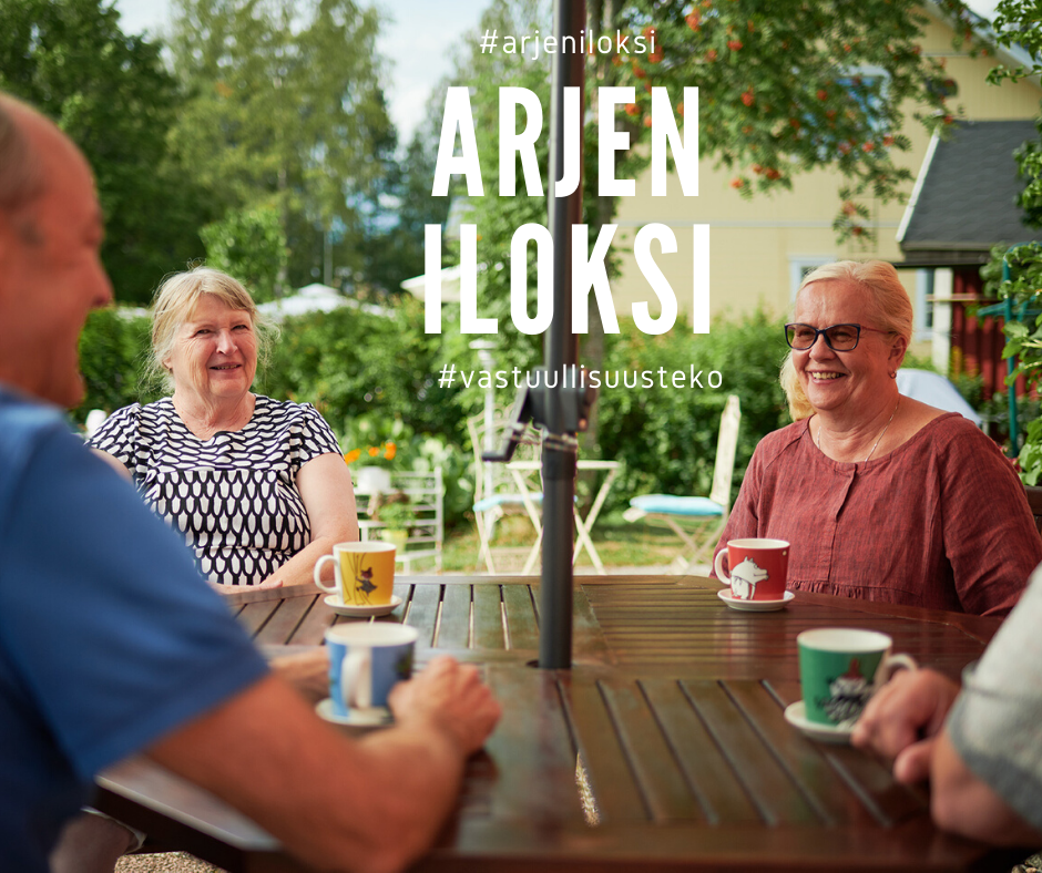 Arjen iloksi -kampanjan aihetunnisteet ovat: #vastuullisuusteko #arjeniloksi #arvokasvanhuus