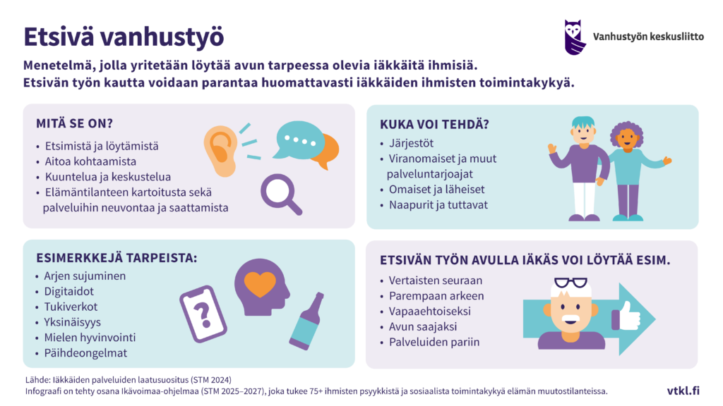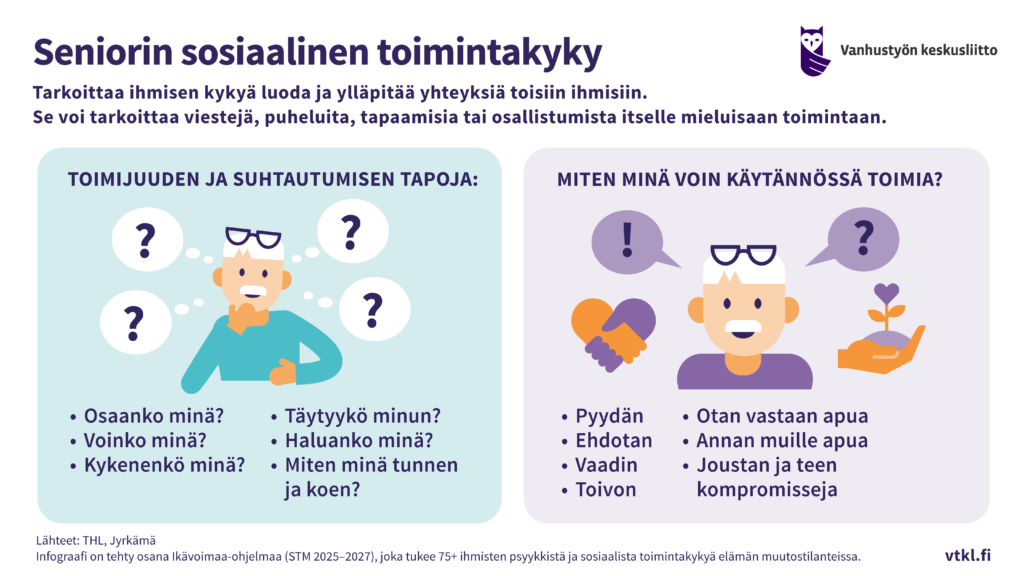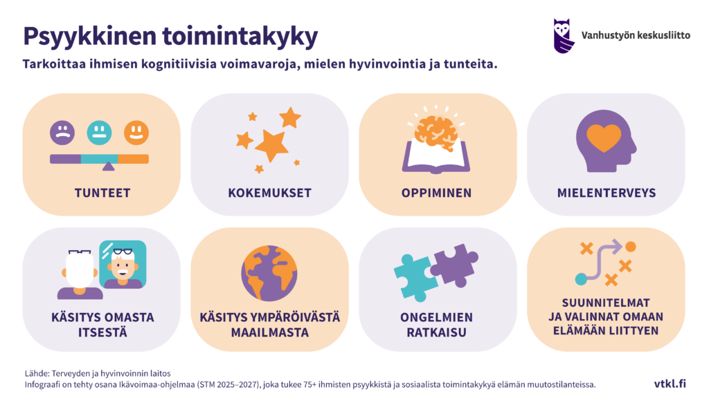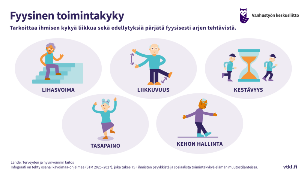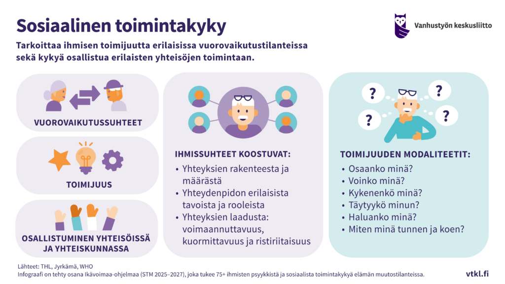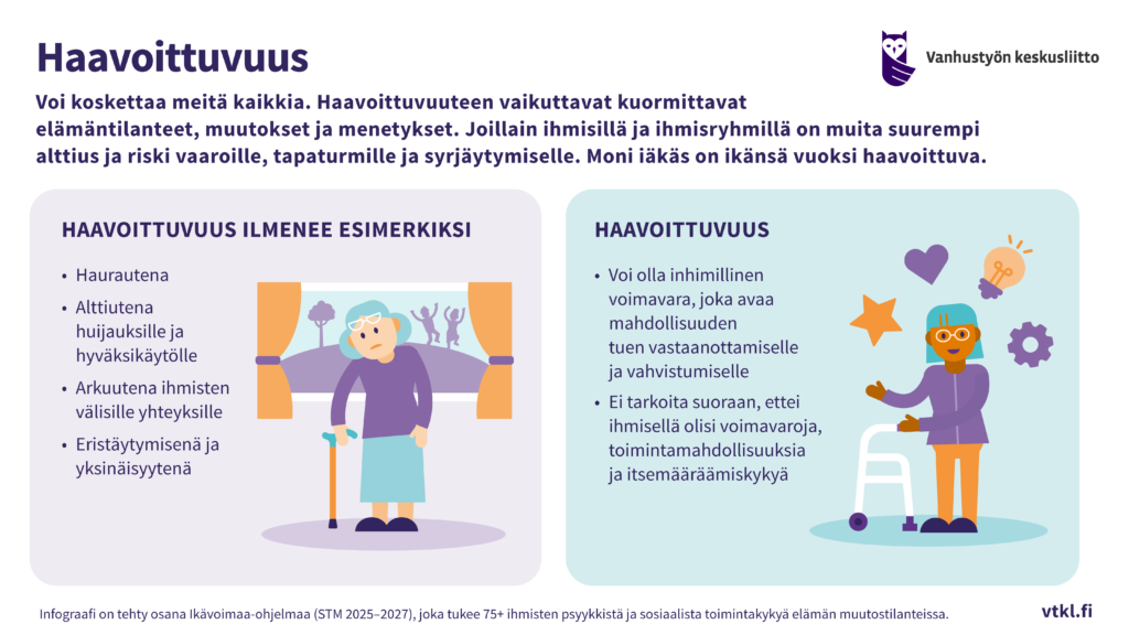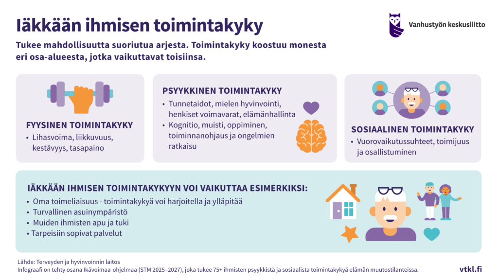 Ikävoimaa-ohjelman koordinaatiohanke on tuottanut infograafeja ohjelman ydintermeistä ja yhteisistä sisällöistä. Tähän mennessä infograafeja on tehty toimintakyvyn eri osa-alueista, haavoittuvuudesta sekä etsivästä vanhustyöstä.